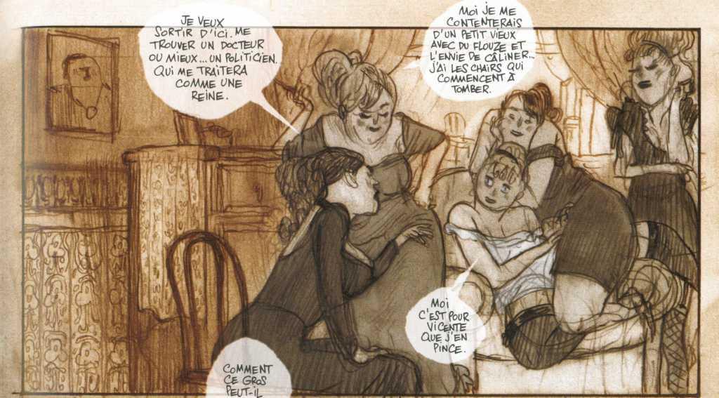 La deuxième partie intitulée « Juste comme ça ». Il s’agit d’un journal intime dessiné de l’auteur. Il a quitté l’Argentine pour pratiquer son travail de dessinateur en Espagne. Il revient pour une courte période dans son pays pour revoir ses amis et sa famille. La nostalgie, le déracinement, l’amour du tango sont les mêmes qu’avec Horacio. Si ce n’est que Jorge Gonzalez a fait le chemin inverse vers l’Europe pour réussir son rêve. Il explique ses états d’âme mais il y lâche aussi des idées, des essais pour le récit qu’il raconte dans sa première partie. Je cite une phrase extraite de ce journal qui caractérise bien l’état d’esprit : « Sans sortir de ma table à dessin, je connais le monde. La fuite est permanente. La distance qui me sépare de ma table à dessin est la même qu’avec mon Buenos Aires ».