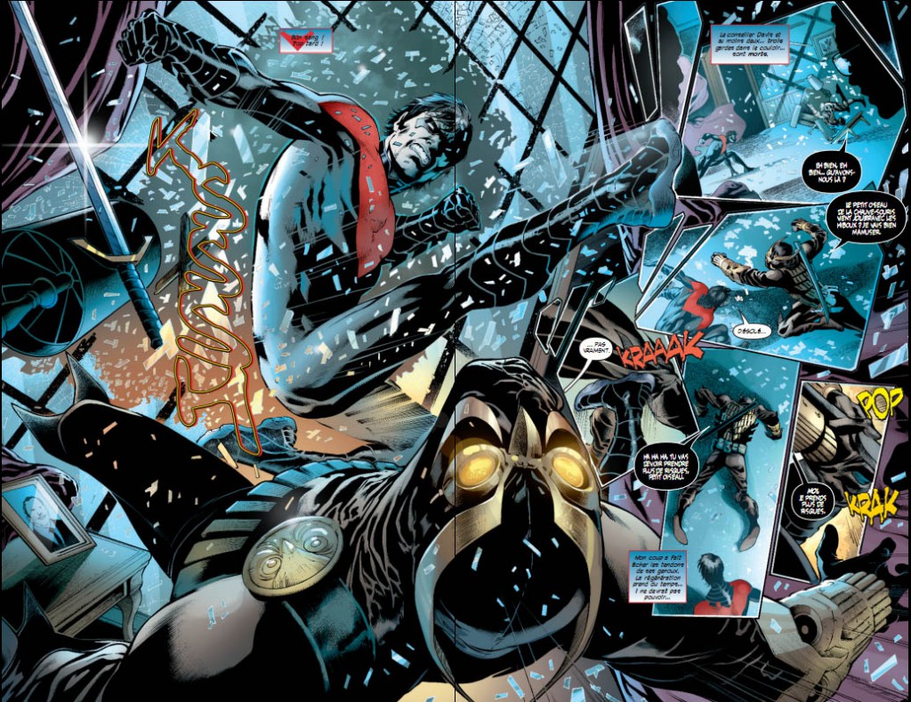 Avec un début de tome convaincant (Cour des hiboux), un début d’arc (République de demain) cousu de fil blanc et un final dispensable, nous avons là un tome qui souffle le chaud et le froid. Heureusement que les passages sur Dick Grayson relèvent le niveau du nouvel arc. A voir pour la suite. Je vous laisse juge des dessins.