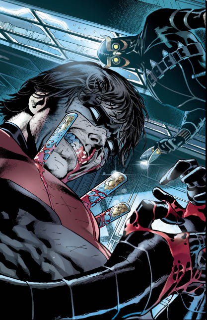 Son alter égo Nightwing est quant à lui confronté à un nouvel ennemi : la République de demain dirigée par Parangon. Il reproche à Nightwing d’avoir tué deux de ses hommes (la fameuse scène de crime du tome 01 où a été retrouvé un de ses bâtons d’escrima).