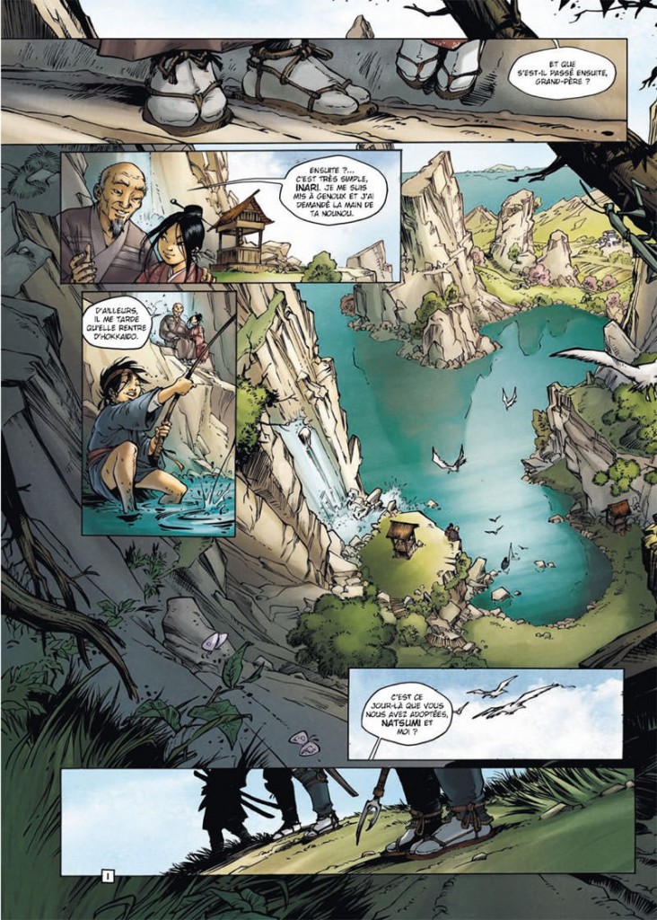 Le dessin a été confié dans cette série à la talentueuse Cristina Mornille (Eden Killer », « Le journal d’Ambre », « Western Valley »…). Cette belle Italienne confirme son talent et sa maitrise du pinceau. Les dessins sont pour le moins vifs et dynamiques. La sensation de vitesse dans les combats est magnifiquement rendue, mais pas seulement. Les visages sont très expressifs et les détails des décors de seconds plans sont bien recherchés. C Mornille nous transmet son amour de cette période japonaise avec une recherche documentaire approfondie. Tout cela est un régal pour les yeux et les amateurs d’arts martiaux. Si il y a une nouvelle dessinatrice, il y a aussi nouveau coloriste en la personne de Stéphane Paitreau. Avec un palmarès impressionnant (« Aleph », « la geste des chevaliers dragons », « Kookabura » …entre autre), notre coloriste fait du très bon travail sur les jeux des couleurs et des lumières à l’acrylique.