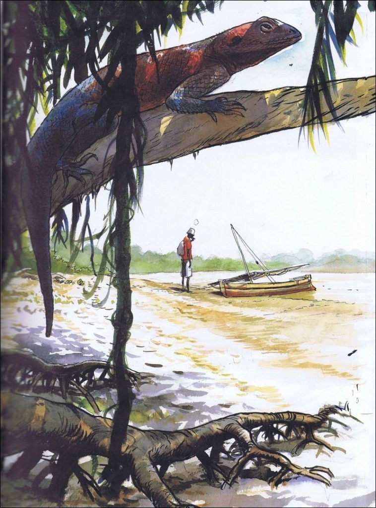 Le dessin de Flao joue un grand rôle pour retranscrire cette Afrique si captivante et sauvage. On a d’abord, ce soleil qui écrase tout, ensuite, des tempêtes où même une lionne ne retrouverait pas ses petits. Et puis, il y a ce séjour en mer, grandiose, héroïque, un modèle du genre à l’aquarelle. Encore un petit conseil de navigation avant ma conclusion : celui qui rame dans le sens du courant fait rire les crocodiles.