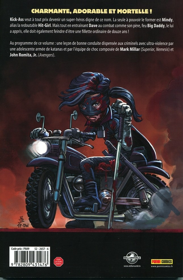 Mark MILLAR nous a encore pondu un scénario de fou !!!! Tueries, meurtres, violence, gore, fusillades, giclées de sang, hémoglobine …. et humour sont au rendez-vous dans cette histoire. Il faut prendre cette histoire au second degré. Il y a pleins d’invraisemblances dans ce scénario mais après tout qui peu croire qu’une gamine de 12 ans puisse seule dérouiller la mafia de son bled ?????
