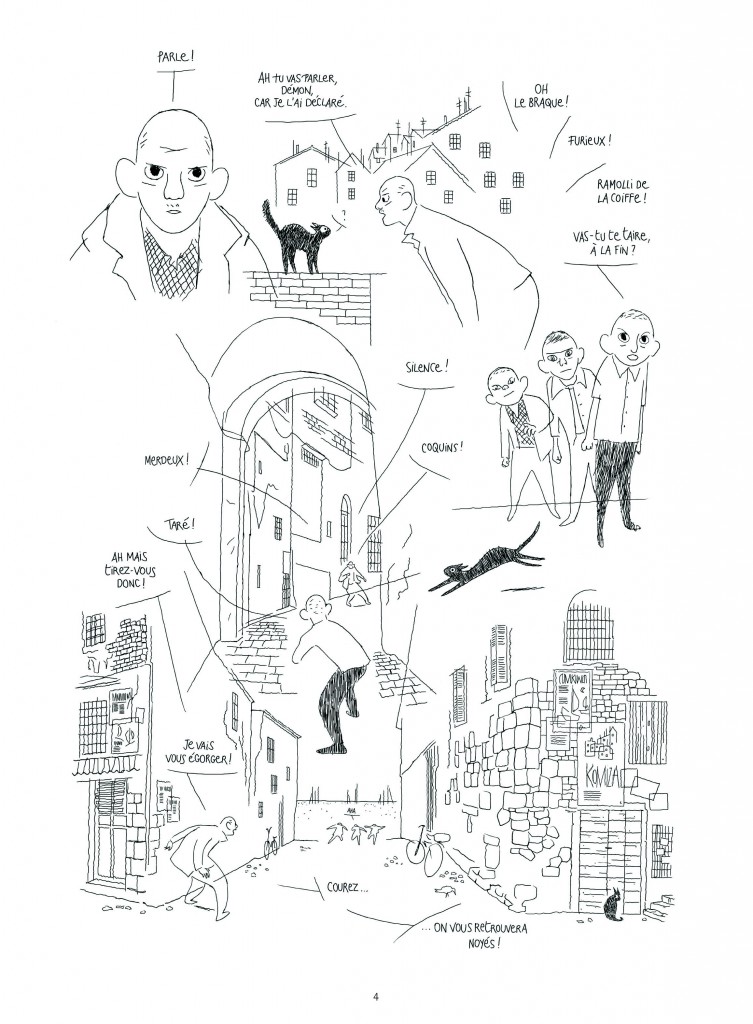 L’histoire est en fait parfaitement bien construite et écrite et la lecture coule de source, pour peu que l’on arrive à mettre de côté les conventions et les codes traditionnels de la BD. Ainsi, la lecture ne se déroule pas toujours de gauche à droite, elle peut être sinusoïdale, tourbillonnante, mais curieusement jamais confuse. Jamais je ne me suis perdu dans une page, et jamais je n’ai eu a chercher le bon sens de lecture. Textes et images se mêlent habilement grâce à une écriture simple, une narration claire, le tout accompagné d’un dessin épuré et élégant.