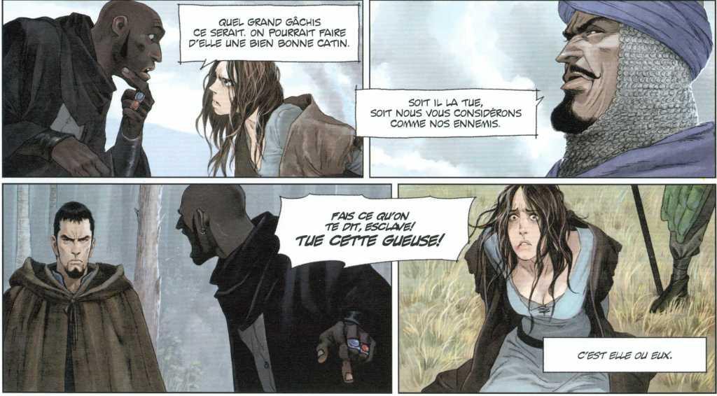 Le dessin de Chaiko n’est pas celui de Von Kummant mais en reste proche. Le dessin est toujours superbe. Chaiko y a mis aussi sa patte. Les romans de Wolfgang Hohlbein sont adaptés chacun en deux tomes. A la fin de ce tome 3, nous ne serons donc qu’à la moitié du récit. Le scénario est dans le plus pur style d’une saga fantastique à inspiration historique. Il s’agit des pérégrinations de deux hommes perdus dans une époque très sombre, à l’époque médiévale, en Europe centrale mise à feu et à sang par l’inquisition et les Ottomans. Malgré que ce soit, somme toute, conventionnel, cela ne manque pas de qualité. La série installe le lecteur dans une ambiance mystérieuse, sombre, qui l’embarque rapidement. Les amateurs de ce style de bande dessinée vont vite devenir accros à cette série, si ce n’est déjà le cas. Un album et une série à découvrir. C’est le moment de prendre le train en marche. Espérons que la série a trouvé son équilibre et va maintenant prendre sa vitesse de croisière et nous valoir à espace régulier les prochains tomes de la saga. Intéressant.