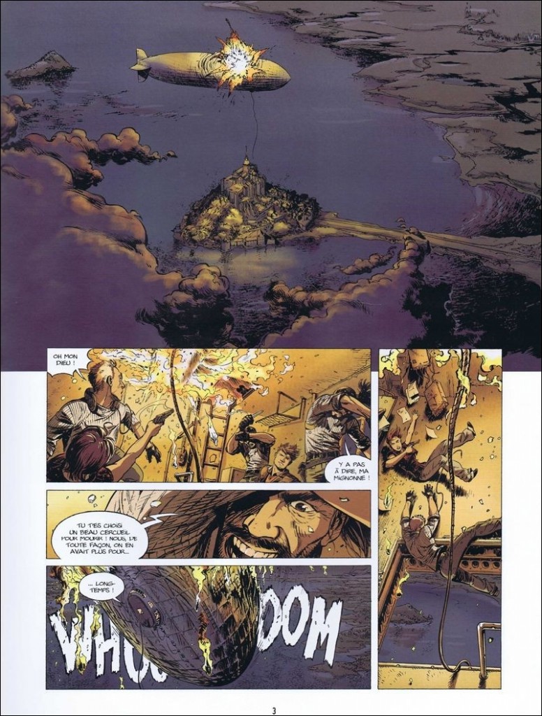Décidément, dans le monde de la BD, le diable est mis à toutes les sauces. Ici, on l’a sorti de sa retraite volcanique pour l’enfermer dans un corps de femme (le pauvre ?). Ce n’est pas encore cette fois ci qu’il va pourvoir déclencher l’apocalypse (damned, encore raté !). De toute façon, l’homme n’a pas besoin de lui pour jouer au con. On peut facilement voir les enfers dès le début de cet avant dernier tome de cette série avec la chute spectaculaire du Zeppelin digne du Hindenburg . D’ailleurs le dessin de Gastine est le point fort de cette série. Plaisant à regarder avec une touche glamour très agréable accompagné d’un décor détaillé, personnages typés et facilement reconnaissables avec une lecture dynamique .Que demandez de plus ?