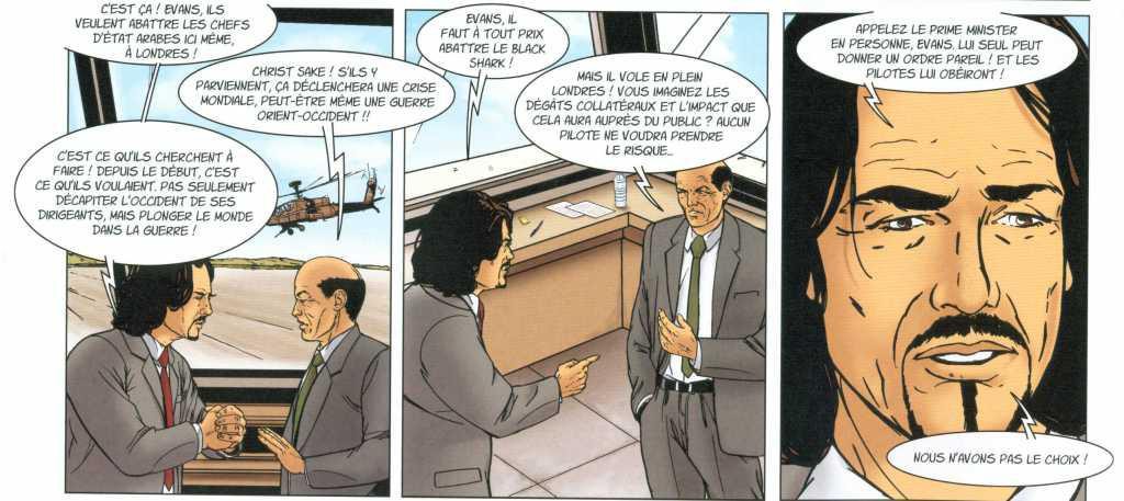 Résumé (de l’éditeur) : L’enquête pour retrouver les drones Black Shark, entraine nos héros en Irlande, où les activistes d’Anarchy, aidés par des membres de l’IRA, leur tendent un piège mortel. Pendant ce temps, les dirigeants du G8, tous rapatriés sur la base aérienne écossaise de Leuchars, se préparent à rentrer chez eux sans même attendre la fin de l’enquête.