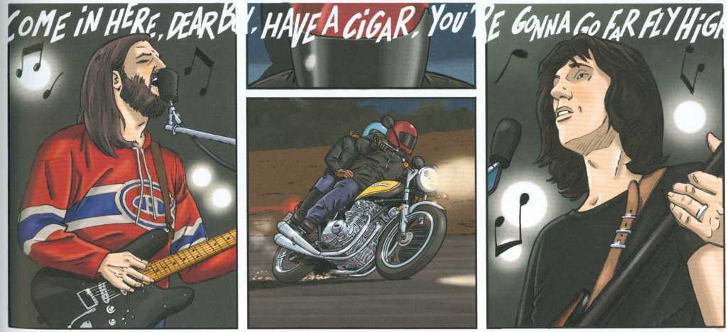 A noter également que la première planche résume le tome 1 de la série, c’est toujours bien pour se remettre dans l’histoire et la dernière planche qui est la planche technique du livre, pour les amateurs de belles motos mythiques (on y parle dans le tome 2 de la Kawasaki 900 Z1 A).