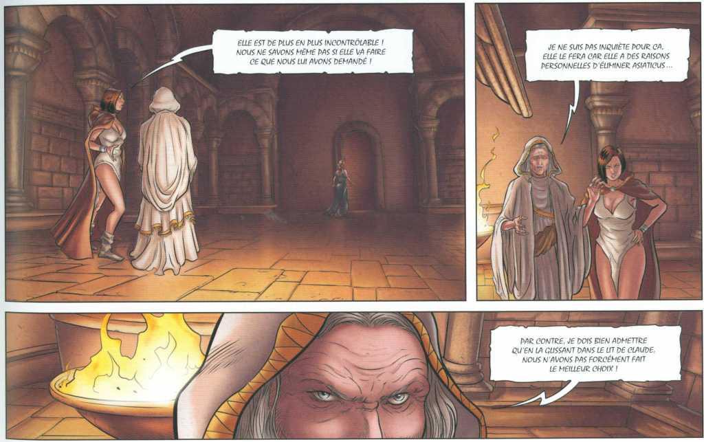 Ici, on se retrouve à l’époque de Messaline qui a été placée dans le lit de l’empereur Claude par l’ordre des filles de Lilith (tout un programme !) qui combat pour la reconnaissance des femmes au plus haut niveau de la société. Les femmes œuvrent donc à l’accomplissement d’un vaste plan aux objectifs occultes (sic !). Cela nous vaut donc une sombre histoire d’alcôves, de pouvoir, de manipulations au temps des Romains.