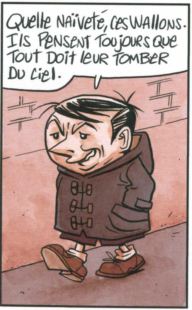 Dernière péripétie en date, c’est l’affaire des pandas ! Le très dynamique parc à thème « Pairi Daiza », situé en Wallonie, a négocié avec la Chine l’arrivée d’un couple de Pandas. La Chine accepte. C’est pour la Belgique un signe de confiance immense de la part de Chine qui pratique la politique des pandas comme un outil marketing de première force. Le premier ministre Elio Di Rupo en remet une couche. Il est sur le tarmac de l’aéroport à l’arrivée des deux sympathiques animaux pour les accueillir en grande pompe. Ils sont reçus comme on reçoit des hommes d’état. L’avion qui les transporte est peint spécialement pour la circonstance aux couleurs du transporteur (DHL) et du parc. Bref, grosse publicité pour Pairi Daiza qui voit ainsi récompenser son travail énorme et efficace dans l’ombre. Bart De Wever, bourgmestre d’Anvers, se réveille et apparaît dans une émission de télévision « people » déguisé en panda. Sur le ton de l’humour, il s’attaque à Pairi Daiza qui bénéficie d’un paquet de subsides wallons, de la bienveillance du premier ministre wallon qui favorise la Wallonie. Le « pauvre » mais réputé zoo d’Anvers méritait bien plus que les wallons la présence sur son territoire des deux illustres plantigrades. Bref, la Wallonie a encore une fois grugé la Flandre…De Wever crie au scandale ! La réponse de Pairi Daiza ne va pas tarder… Non, Pairi Daiza n’a reçu aucun subside et c’est le résultat de leur expertise, leurs contacts directs en Chine, de leur travail de longue haleine, leur sérieux. Le Zoo d’Anvers n’a jamais fait la moindre demande à la Chine pour avoir les pandas et en plus il bénéficie de subsides illégaux de la région flamande. Pairi Daiza donc réclame le remboursement de ses subsides par le zoo D’Anvers mais invite Bart De Wever a faire une visite en Wallonie pour rendre visite aux pandas. Il est le bienvenu ainsi que le public flamand. Voilà Bart De Wever pris au piège de sa propre rhétorique et remis à sa place. (Le communiqué de presse humoristique de Pairi Daiza : ICI).Voilà pourquoi vous trouverez des pandas dans l’album…