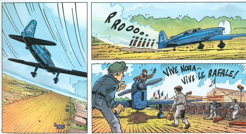 Résumé (de l’éditeur) : 1935. Nora Stalle, pilote intrépide et expérimentée, est employée par Air Zénith sur ses liaisons postales aériennes. La compagnie veut frapper un grand coup publicitaire : un raid aérien vers l’Extrême-Orient, et choisi Nora pour être la pilote du Caudron Simoun spécialement équipé pour cette aventure. Un nouveau mécanicien lui est assigné comme compagnon dans le raid, Théo Norville. Un mécano doué qui se révèle vite avoir du tempérament, une grande gueule, libertaire, avec un penchant marqué pour la bouteille…