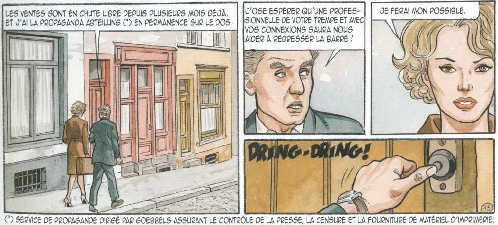 L’avis de Samba sur l’album : Le contexte historique est intéressant, la presse écrite sous l’occupation nazie .En plus, on situe le récit à Bruxelles. L’encrage de proximité est toujours un plus pour attirer le chaland. L’histoire est correcte, elle est à l’image de l’héroïne de Renaud, belle et froide. Par contre, on reviendra pour y trouver de l’émotion. A se demander si l’association Gihef /Renaud est des plus judicieuses ?