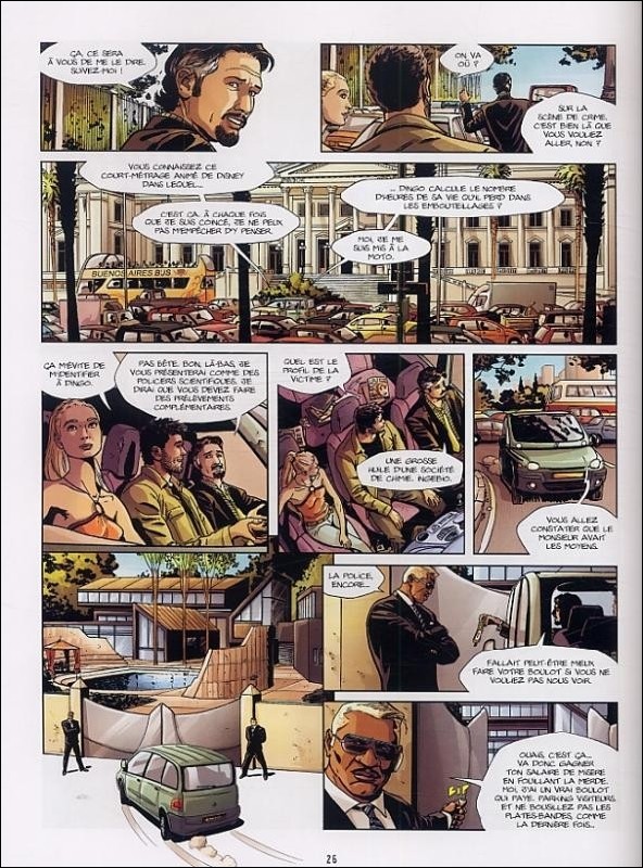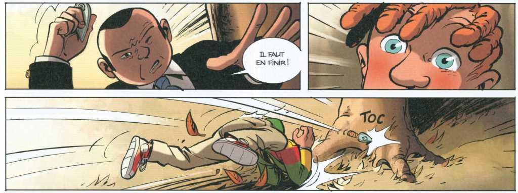 Au dessin, Ers continue à distiller un trait rond et fin à contre-courant de la noirceur du récit. C’est sa force de faire passer des thèmes difficiles sans vraiment plomber l‘ambiance. Le résultat est que l’album reste agréable à lire et pour tous les publics, malgré les thèmes noirs et difficile à traiter. Dugomier assure également au niveau du scénario et nous livre une série divertissante et intelligente, la quadrature du cercle pour certains scénaristes, ce qui ne lui pose pas vraiment de problème. Je pense que ce troisième tome aurait pu être traité non pas en un tome mais en deux tomes car le scénario est très dense et il faut suivre…Certains aspects auraient pu être encore plus développés mais je suppose que les auteurs avaient pour mission de leur éditeur de terminer la série en trois tomes. Les couleurs sont réalisées de très belle façon par la coloriste Angélique Césano.