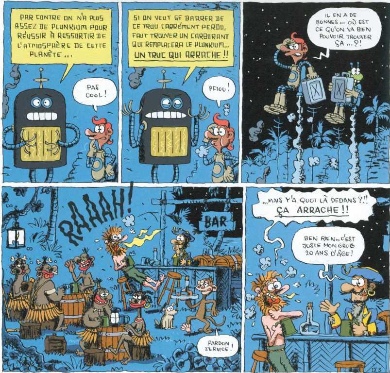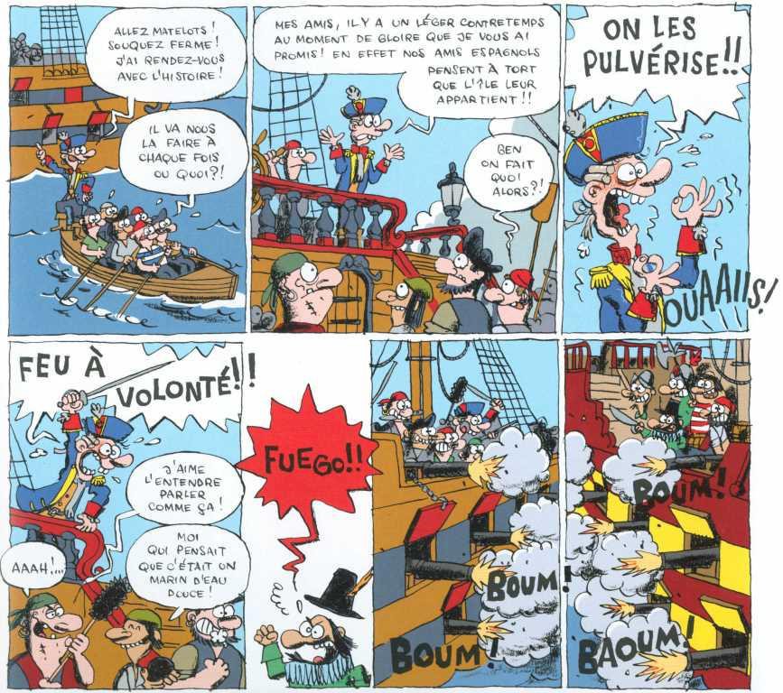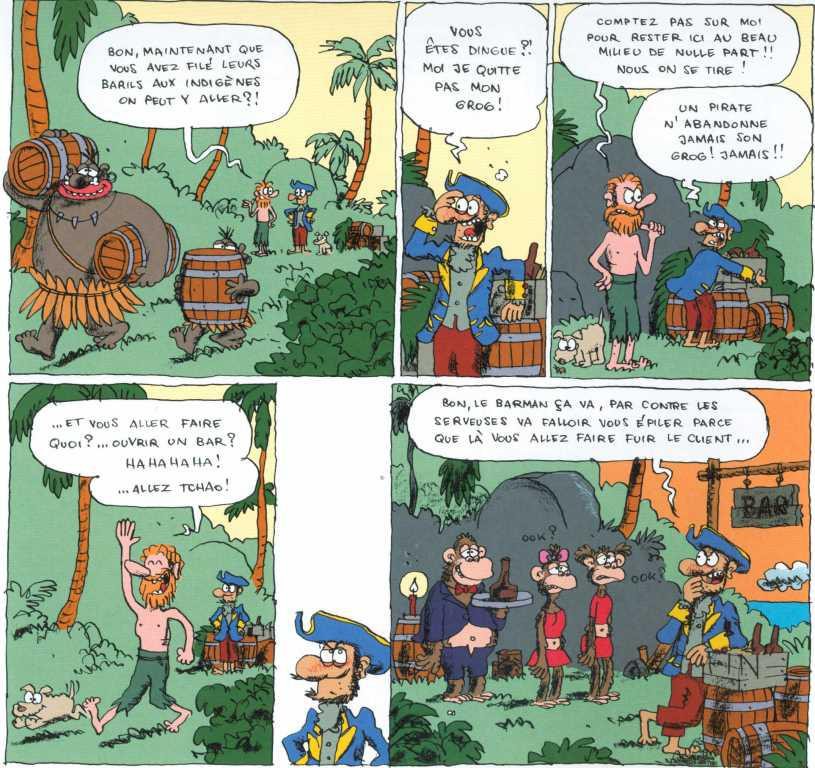 Nous avons proposé ‘ l’Ile carrément perdue ‘ chez Dupuis, mais apparemment ils avaient assez de bandes dessinées de pirates sous contrat. Néanmoins notre bande dessinée a une bonne vente auprès de la clientèle Spirou. Je crois que Dupuis regrette son refus.