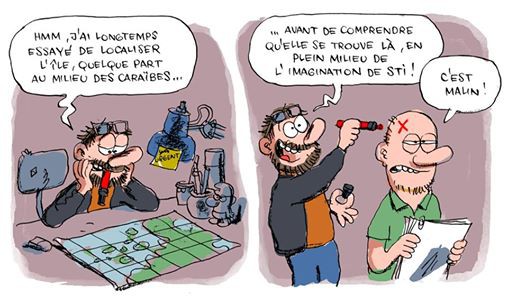 Samba BD : Comment avez-vous fait la connaissance de Sti ? Comment s’est mise en place votre collaboration avec lui pour cette nouvelle série « L’Ile Carrément Perdue » ?