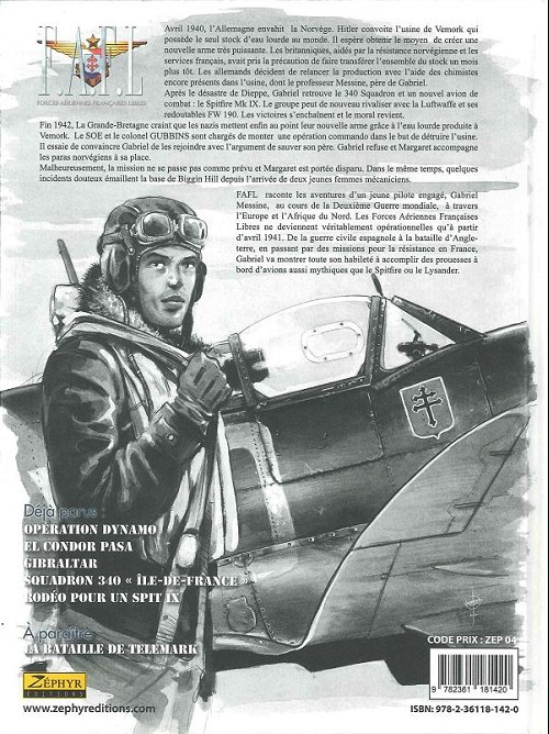 Voici, encore, une histoire de combats aériens pendant la deuxième guerre mondiale! Cette série raconte les aventures, pour le moins imagées, d’un jeune pilote français, Gabriel Messine, combattant au sein des Forces Aériennes Françaises Libres, avec des avions et du matériel fourni par l’Angleterre.