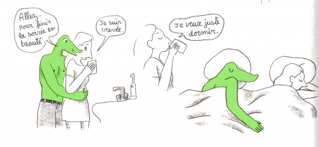 « Moi, ça ne m’est jamais arrivé » et j’en suis bien contente car je savais avant d’ouvrir la BD, ce que certaines subissent. Ah si ! finalement, en cours de lecture ça m’est revenu… et plutôt deux fois qu’une. Un papi tripoteur, une nouvelle enseignante canon, un petit ami un peu trop entreprenant… des crocodiles ordinaires.