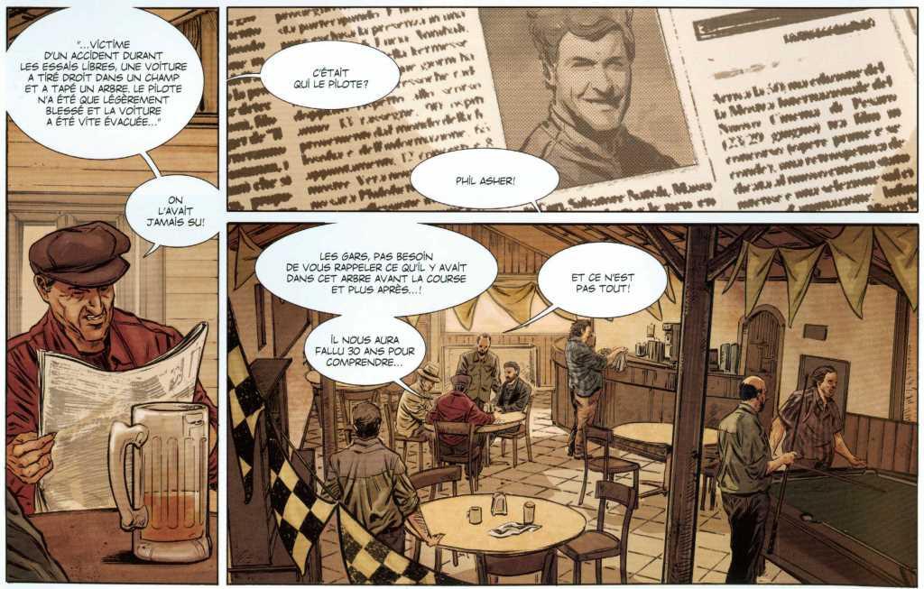 Michel Constant et Denis Lapierre explorent le passé et les liens qui unissent Mauro, le jeune pilote, et Gigi, son co-pilote. Qui est la vieille dame ? Pourquoi Gigi s’absente-il chaque année à la même période pour lui rendre visite ? Qui se cache derrière les messages d’un corbeau ? Il s’agit en réalité d’une enquête policière qui verra son dénouement en fin d’album. L’action se passe dans les années ’50 en Italie entre mafia et course automobile. Mais, la course automobile est en arrière-plan dans cette histoire.