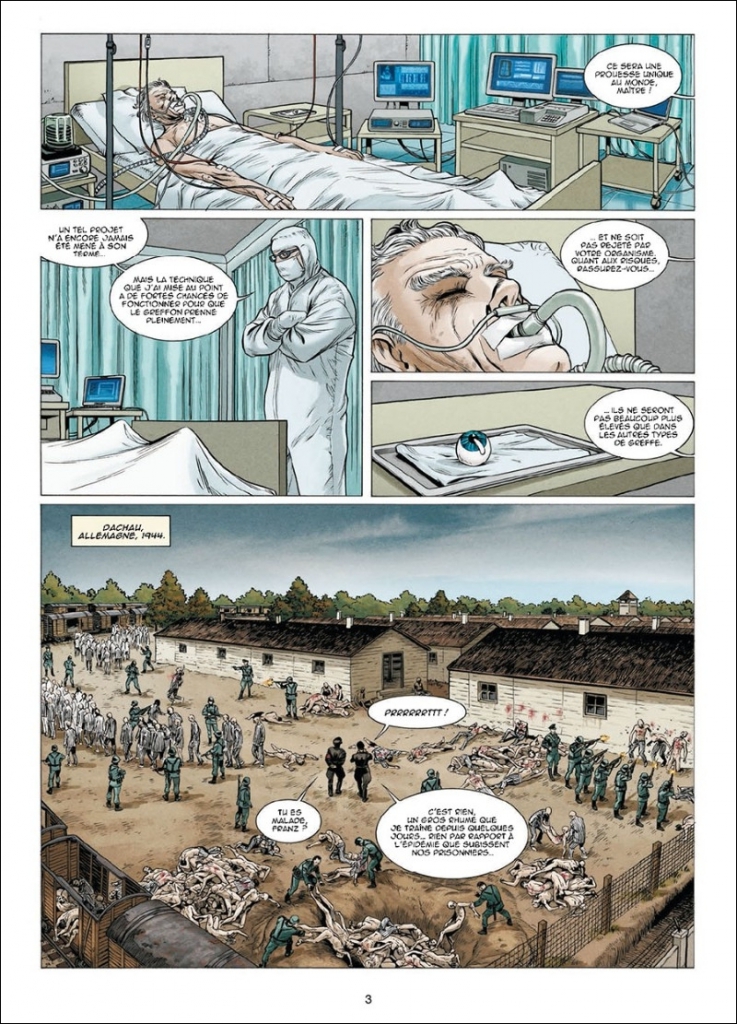 L’horreur atteint des sommets avec l’évocation des saloperies nazis des camps de la mort. Hormis les explications des vivisections parfois un peu longues, le rythme est vraiment halenant jusqu’ à l’avant dernière page .Par contre, la dernière page m’a laissé très perplexe (attention spoiler) car tout ça pour ça ! Tous ces moyens déployés, toute cette artillerie lourde pour une dernière baignade ????