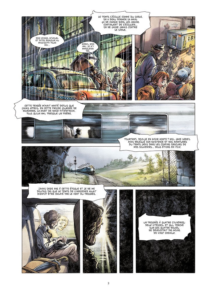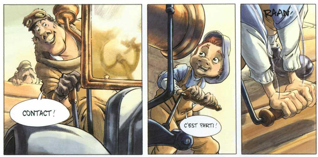 Mon avis : La fameuse collection « Calandre » accueille une nouvelle série intitulée « Tin Lizzie ». Mais attention, dans cette collection, on pense surtout à la course automobile sous toutes ses formes. Ici, le lien avec l’automobile est plus original. On se retrouve en 1908. Le colonel Lebey, riche propriétaire, achète une voiture mais pas pour parader ! Il veut juste la transformer en tracteur. Il veut innover sur ses terres et améliorer ainsi le rendement de ses cultures. C’est ça le progrès ! Rhod, son bras droit, est chargé de procéder à la transformation du véhicule mais celui-ci profite de l’absence du patron pour faire une virée à la ville de New Bay. Pour lui, la voiture est avant tout le plaisir de la conduite, la liberté de mouvement, la vitesse,… Il entraîne dans son voyage Jake, le petit-fils du colonel. C’est le départ de la série…