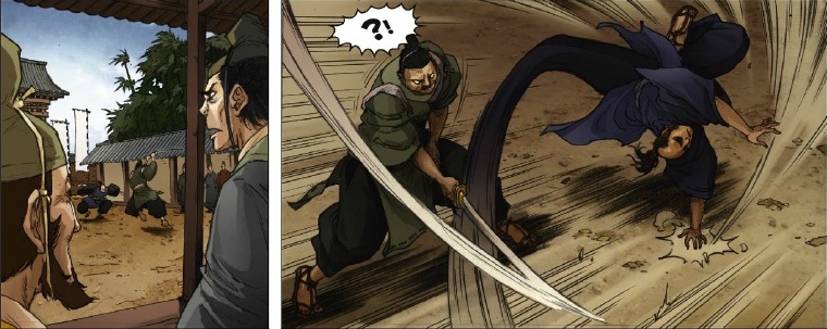Le dessin est, en revanche, ambivalent. Xu Zhifeng est un auteur chinois dont c’est la première incursion dans la BD franco-belge. Ses planches sont dynamiques. Les scènes d’actions sont une vraie réussite de rendue de mouvement. Sa connaissance de l’orient est un atout dans l’écriture de cette trilogie. Cependant, une gêne persiste, notamment au niveau de la maitrise des perspectives ou des proportions entres protagonistes (voire la couverture, par exemple) pas toujours respectées. Par ailleurs, les visages un tant soient peu figés n’aident pas à la compréhension du scénario. Cela fait un tout assez inégal.