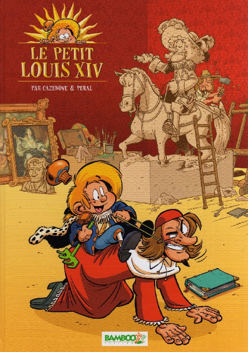Cette réalité historique permet au talentueux CAZENOVE d' »inventer » quelques situations cocasses tirées de faits et personnages de l’époque. L’album se compose de récits plus ou moins courts avec chute comique. Mazarin est présenté comme un pingre qui va remplacer tous les professeurs du futur roi par souci d’économie, allant même jusqu’à l’empêcher de danser sur le parquet qu’il risque de rayer! La mère du roi est également épinglée, elle prends les traits d’une fanatique espagnole punissant son fils en l’obligeant à engloutir des tonnes de Paella…