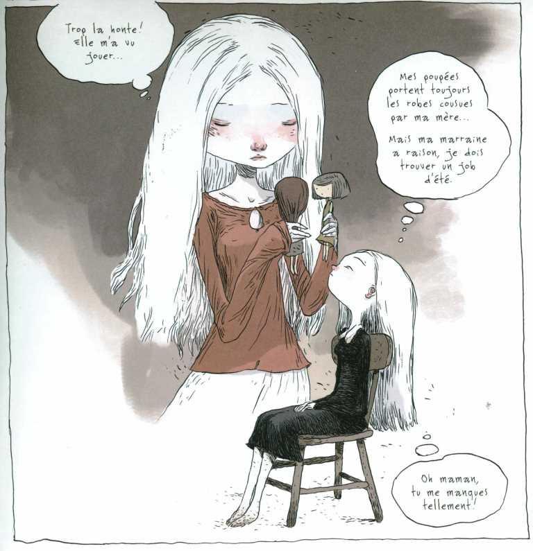 Lorsque je me suis retrouvé avec le livre en mains, l’impression de toucher un objet de qualité s’est directement imposée. Passer les doigts sur cette magnifique couverture, sentir le poids de l’ouvrage, le feuilleter avec respect, tout cela m’a procuré un sentiment ambigu qui ne m’a pas quitté pendant une lecture plus attentive et plus critique. Il s’agit d’une bande dessinée, bien sûr, mais aussi d’un livre d’illustrations artistiques. Les strates narratives se déploient en nous faisant passer d’une histoire d’enfants à un récit complexe, elliptique et fascinant. L’émotion esthétique du regard importe autant que le plaisir de la lecture de ce conte noir.