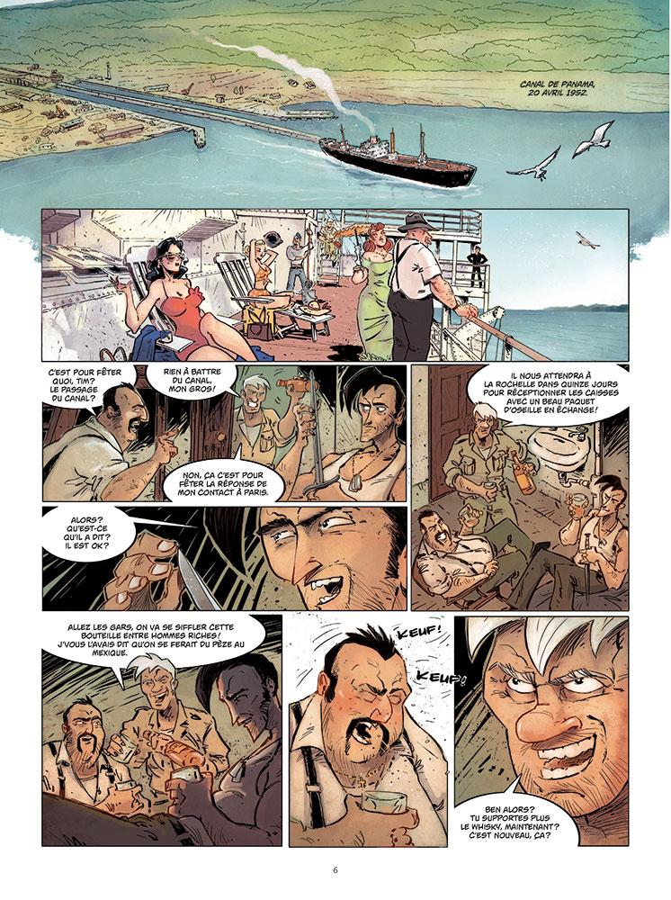 Le 1er plat de couverture parle pour lui-même : Un symbole Maya, 3 guérilleros patibulaires, une brune plutôt bien faite, une vielle gâteuse rongée par la folie; Gold of the dead affiche un scénario insolite truffé d’action pure. On se croirait revenus dans le temps avec ces films séries B, à mi-chemin entre un San-Antonio de Frédéric Darre et histoires sans héros de Van Hamme, le tout accentué par une touche fantastique insérant des zombies en quête de sang frais.