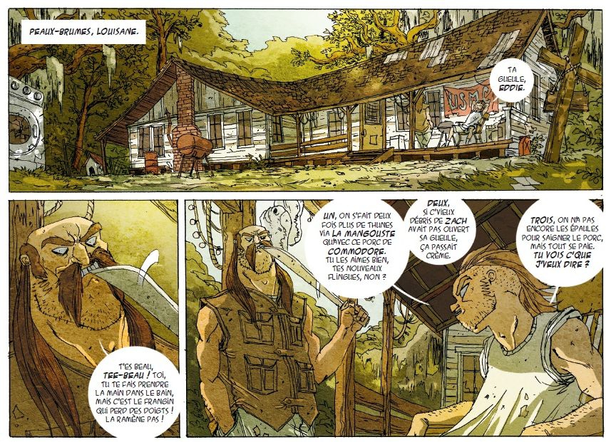 Bayou Bastardise nous entraine dans les bas fonds de la Louisiane. On est loin des cartes postales alléchantes d’agences de voyage faisant l’article pour une excursion exotique. A Peaux-Brumes, ça sent plutôt la moiteur, la crasse et la misère sociale transpire à chaque coin du bayou.