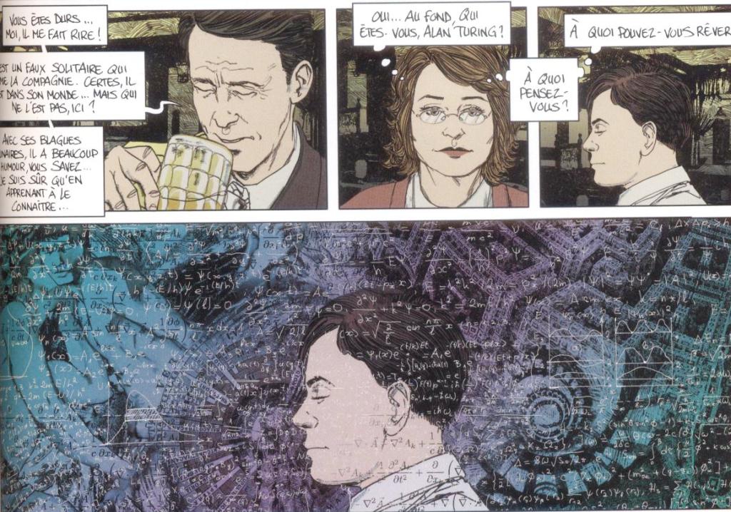 Le destin hors du commun de ce génie des mathématiques évoqué par le film « Imitation game », fait ici l’objet d’un hommage biographique en bande-dessinée. Si le scénario privilégie la période de la seconde guerre mondiale, de nombreuses anecdotes (enfance, jeunesse, amours, monde intérieur,…) émaillent l’album. Alan Turing s’est, par exemple, suicidé en croquant dans une pomme enrobée de poison, s’inspirant du dessin animé Blanche Neige. Une pomme dont on prétend qu’elle inspira également le logo d’Apple…