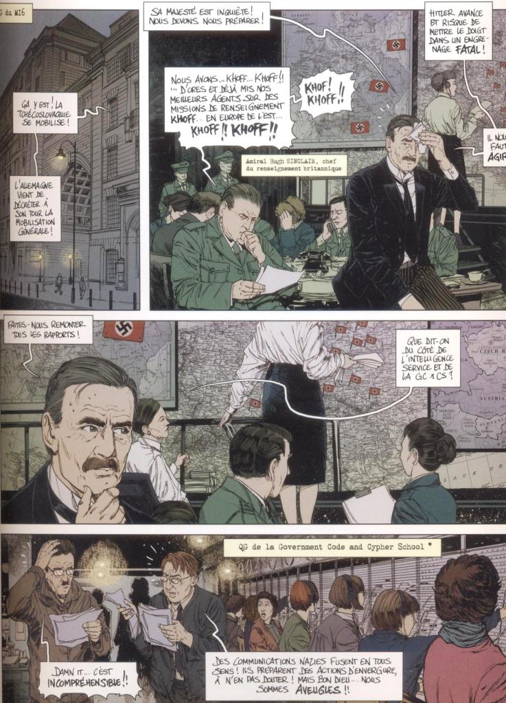 En conclusion, ce récit historique intéressant, traité sous le mode du thriller, captivant et dynamique, ravira particulièrement les amateurs de logique mathématique. C’est aussi une réflexion sur le sens du devoir, la solitude et la difficulté de vivre en se sentant différent et incompris. A la fin de l’album, un passionnant dossier de Bruno Fuligni revient sur les différents aspects de la guerre cryptographique.