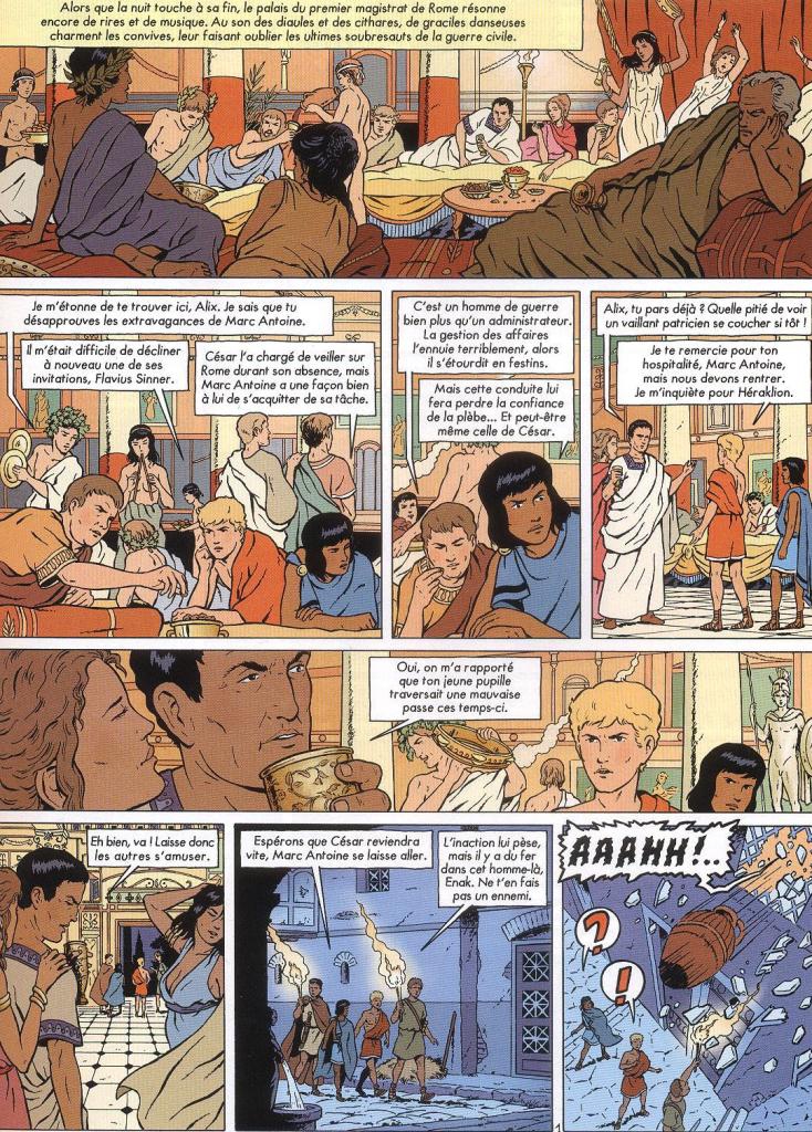 Le côté vintage de l’album et du dessin, les rebondissements de fin de page qui dynamisent le récit, les références à cette fameuse mythologie alixienne, le respect des exigeants codes martiniens, font de ce livre une réussite. Ce qui aura le mérite de concilier les attentes de plusieurs générations de lecteurs des aventures d’Alix.