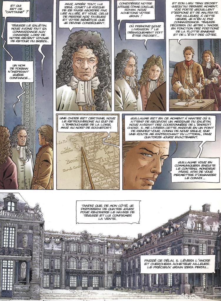 Le scénario est construit sur de solides bases historiques sur lesquelles un récit d’aventures vient habillement se greffer. Un art du suspense bien maîtrisé vient encore s’ajouter à ce contexte original et particulièrement hostile. Sorte de western sous la neige style Louis XIV, l’intrigue est d’autant plus passionnante que les dialogues ont été réduits à l’essentiel au profit de l’action.