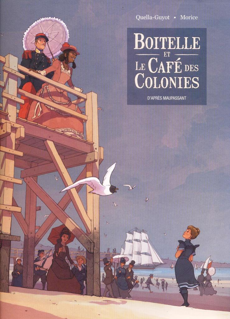 L’adaptation de textes littéraires classiques est un exercice difficile mais on peut dire que les auteurs s’en sortent plutôt bien ; d’une nouvelle de Maupassant au sujet encore d’actualité, ils tirent un petit roman graphique plein de nuances et de sensibilité. Cette histoire d’amour impossible entre un soldat et une jeune femme noire, ce refus d’un couple de paysans obtus d’accepter le mariage de leur fils avec une « étrangère », reste un excellent support pédagogique pour traiter la question du racisme et on la retrouve d’ailleurs dans de nombreux manuels scolaires francophones. Le scénario respecte scrupuleusement le texte original, une nouvelle de la plume de Didier Quella-Guyot vient par ailleurs donner un épilogue heureux à cette histoire. L’album est le tout premier réalisé par le dessinateur, publié chez l’éditeur Petit à Petit en 2010 et devenu introuvable. La réédition dans la collection Grand Angle de Bamboo a amené les auteurs à quelques petits remaniements formels.