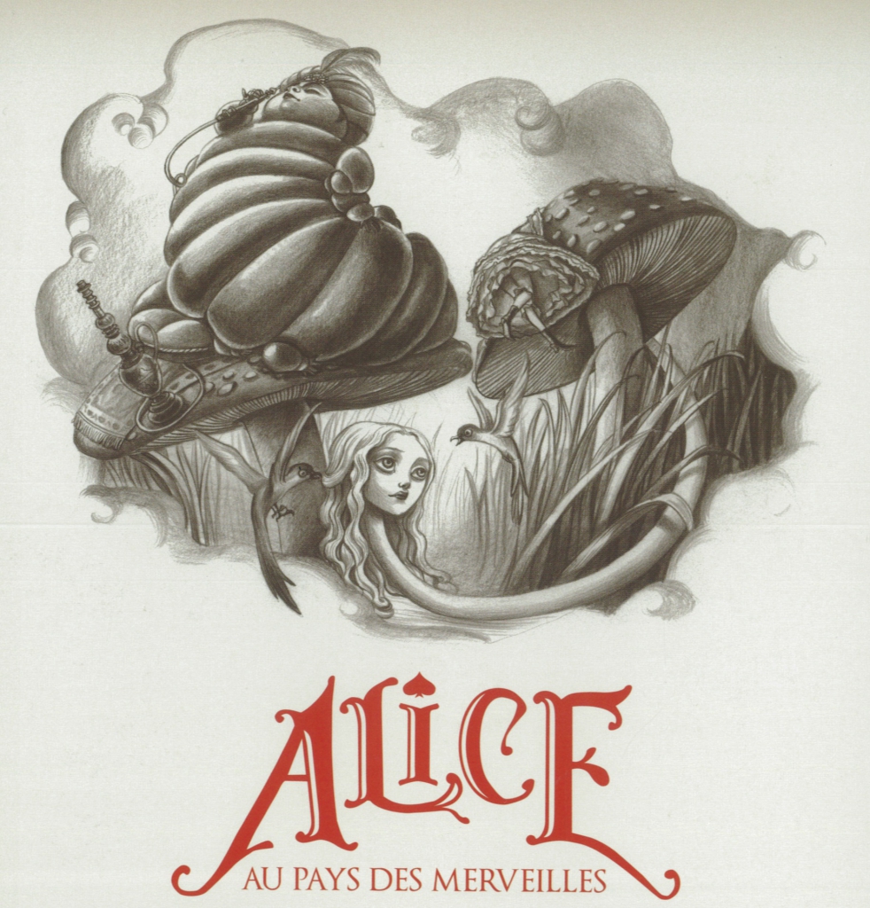 Loin des dessins de Disney, cet album rejoint l’univers de Tim Burton. Les lapins albinos pourraient se transformer en monstres sanguinaires ou en prédateurs aiguisés. Parmi tous ces portraits plus ou moins « fumeux » ou « fumant » celui d’Alice est souvent alangui et ses attitudes ressemblent aux portraits de petites filles photographiés par Lewis Carroll lui-même. Elles n’avaient pas l’air de rigoler tous les jours ces fillettes… limite, elles circulent dans les écoles pour la publicité « enfance en danger ».