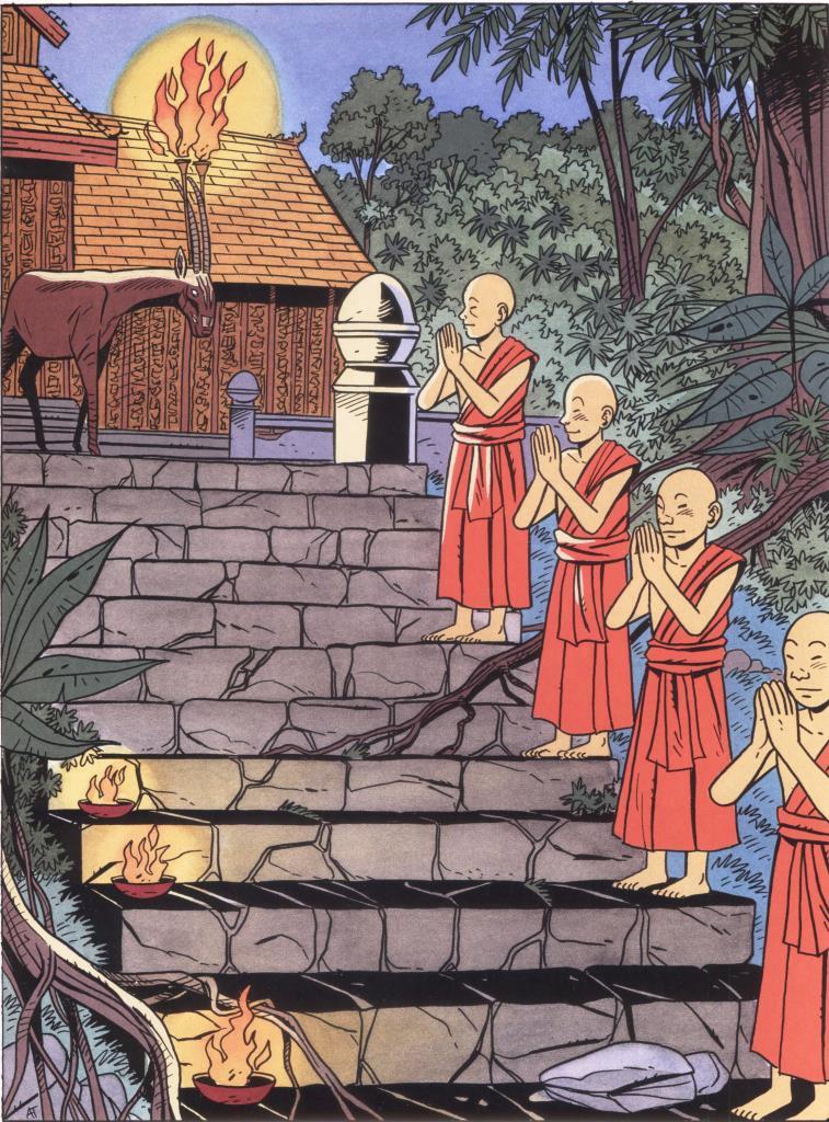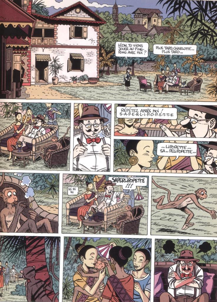 Une introduction de quelques pages, agrémentée de photos et planches inédites, raconte la genèse de la série et sa préparation minutieuse lors d’un voyage au Laos. L’architecture coloniale des années 30 est souvent mise en valeur par le dessin d’André Taymans.