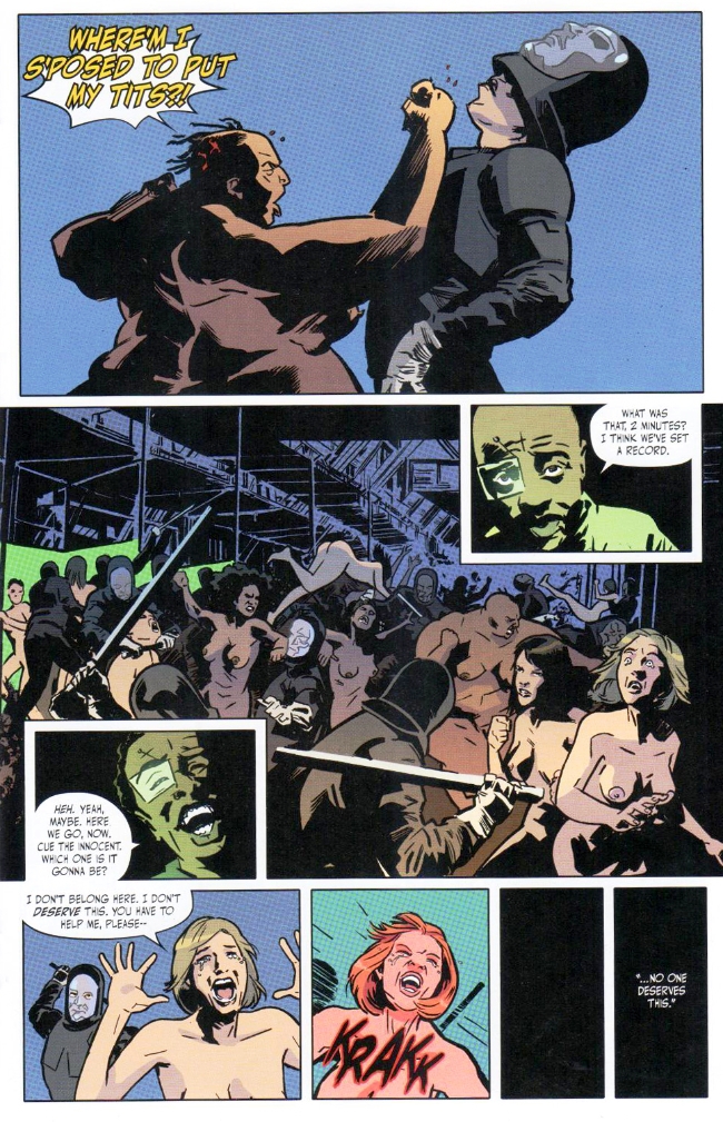 Le scénario de Kelly Sue Deconnick allie les ingrédients du huis-clos carcéral et violent avec ceux du discours social et politique engagé, le tout baignant dans une atmosphère SF très particulière. D’une galerie de personnages émergent les personnalités de Kamau Kogo, immédiatement identifiable à sa coupe afro, et de Penelope, une femme au caractère irréductible, super-héroïne noire et obèse (impossible de ne pas penser à la série Orange is the new black ou aux films Grindhouse). Ces détenues sont bien décidées à bousculer les règles d’un sport extrêmement violent, le Megaton, sorte de Rollerball, auquel elles vont participer. Les dialogues sont tirés au cordeau et habilement répartis dans les cases, les qualités d’écriture évidentes.