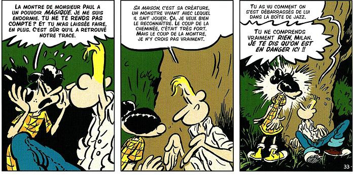 Milan et sa petite soeur Rosa doivent passer une semaine chez leur oncle car leur maman sera absente pour cause de recherche d’emploi ! Arrivés à la gare de la grande ville leur oncle n’est pas là ! Ils se rendent donc à son domicile et sont invités par un mystérieux voisin, Monsieur Paul, à prendre un petit déjeuner chez lui en attendant le retour de l’oncle…. Mais c’est là que les ennuis commencent : Paul est horloger et fait travailler des pauvres enfants sur ses mécaniques ! Rosa va lui voler une montre et les deux gamins passeront la nuit à fuir le bizarre horloger qui semble commander au temps.