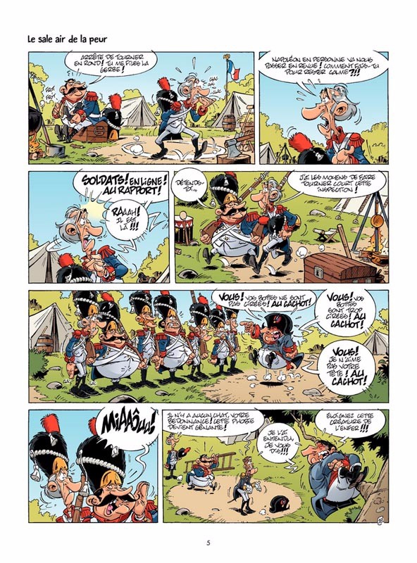Incontestablement, celui qui fut le premier empereur des Français restera, pour des temps indéfinis, un des personnages les plus emblématiques de l’Histoire de France et du monde, en général. Enfin, même si cette BD ne dépeint pas un portrait prestigieux de cet ancien chef d’État, en dévoilant sa personnalité impulsive, ses phobies, les surnoms liés à son physique, etc. Toutefois, ce n’était pas chose aisée de traiter les péripéties de ce célèbre conquérant avec humour et pourtant, Lapuss’ s’est assez bien débrouillé ! Stédo, quant à lui, n’a pas hésité à forcer le trait en persiflant Napoléon. A noter aussi que chaque gag est auguré par un titre 100% jeux de mots que je trouve, personnellement, pas terribles. Mais il fallait aussi expliquer les anecdotes, les faits historiques, burlesques (pas tous véridiques, contrairement à ce qu’on veut nous faire croire) que recouvrent les plus de quarante planches, évidemment. C’est pourquoi, s’accompagne à cela un dossier de 6 pages qui plaira aux férus d’histoire. Pour en revenir au scénariste, on peut constater qu’avec cette série, il aurait bien l’intention d’élargir sa cible de lecteurs vu qu’il n’a pas coutume d’employer ce type d’humour. En effet, le plus souvent, son style est plus discordant. Cédera-t-il lorsqu’il co-entamera les autres tomes? J’espère que non et j’espère également que le deuxième volet nous présentera une série de récits plus honnêtes, cohérents et réalistes les uns que les autres. Sinon, un album marrant mais très ordinaire centré sur celui qui aurait déclaré « l’avenir d’un enfant est l’œuvre de sa mère ».
