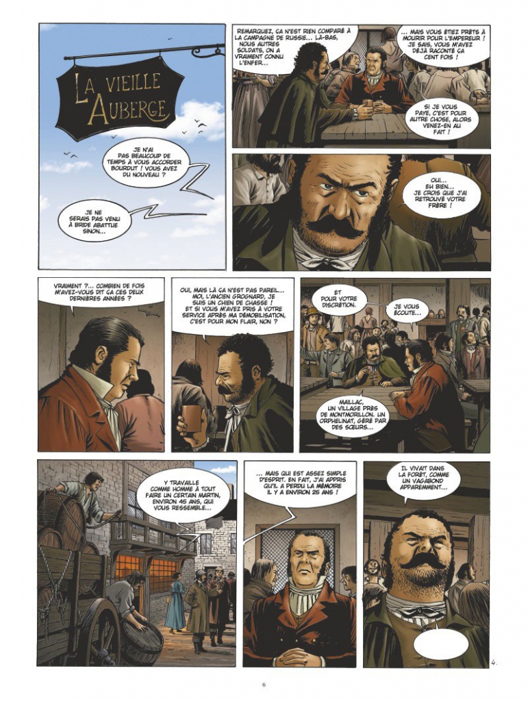 Le dessin de Fino est parfait, avec des personnages ténébreux à souhait, des décors d’une précision chirurgicale et une mise en couleur sombre, austère, qui nous met directement dans l’ambiance. On se régale de ses belles planches au trait réaliste et classique avec des cadrages toujours judicieux donnant véritablement vie à ce récit.