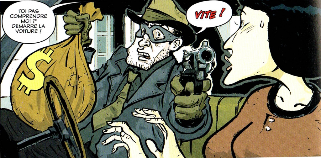 femme, prend une rouste et est aidé par la jeune femme en question, meilleure combattante que lui ! Et il repart dans la voiture de sa mère, morte de honte.