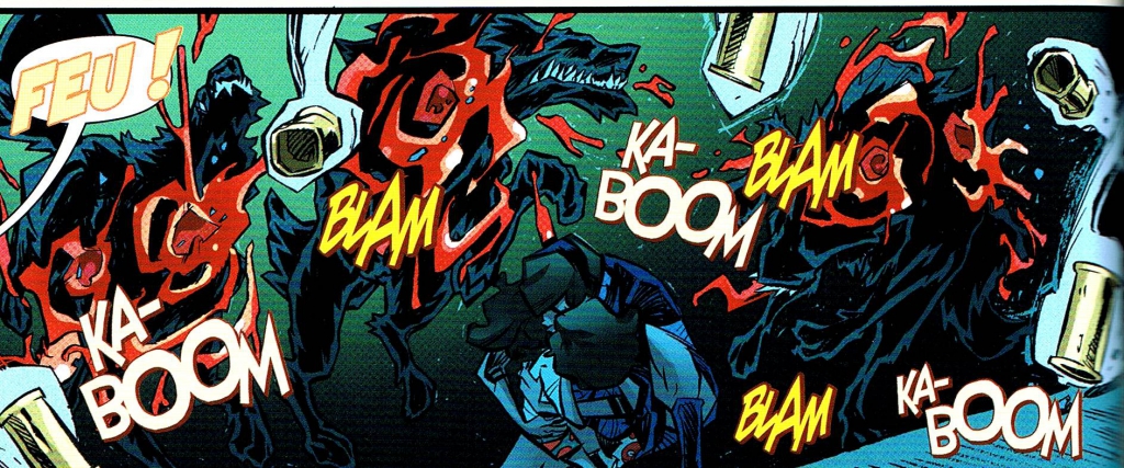 Et tout l’album est comme ça! et cela n’arrête pas, et on voudrait suivre mais on ne peut pas car c’est confus, ça part dans tous les sens, ça commence des explications qui ne finissent pas… où alors je suis trop vieux pour ce genre de comics ?