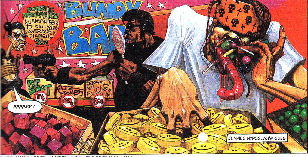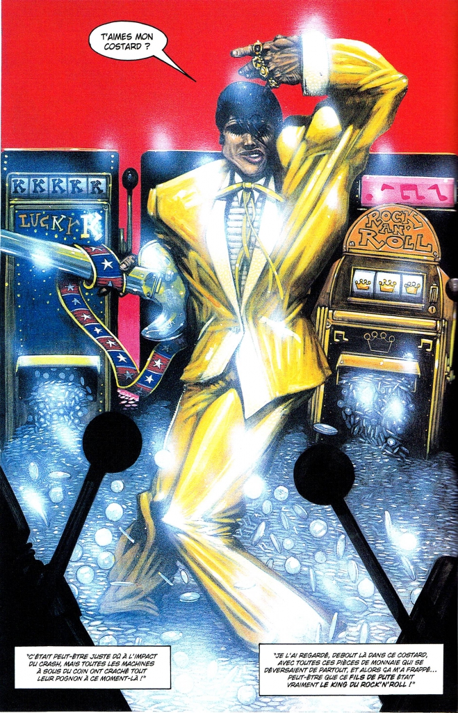 Un album complètement crade ! Un road-comic très seventies qui mène le lecteur, tambour (de cadillac) battant, à travers ces bons vieux Etats-Unis comme on les aime : racistes, violents, tarés et, surtout, Rock n’ Roll ! Le scénariste écossais Gordon Rennie s’en donne à cœur joie mais l’album ne serait rien sans le dessin violent aux couleurs surexposées du talentueux Martin Emond ! l’artiste est « habité » par l’histoire, on sent bien qu’il a compris le sens de l’expression « No Future » ; c’est peut-être pour cela qu’il s’est suicidé par pendaison en 2004. Bravo l’artiste, rien qu’avec cet album tu nous laisses un sacré testament.