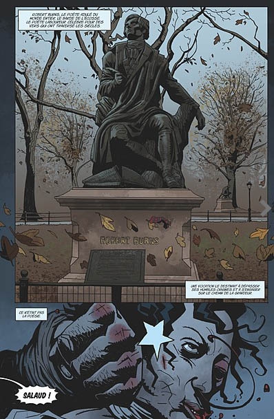 Mais si le background ressemble à du Hellboy et le design aussi pourquoi acheter ce tome me dirait vous ? Et bien parce que s’inspirer des meilleurs n’est pas un mal quand c’est bien fait. La vraie valeur ajoutée est apportée par le travail d’intégration des œuvres de Robert Burns au récit par le duo Gordon Rennie et Emma Beeby. (Comme un Neil Gaiman qui intègre Shakespeare dans Sandman par exemple).