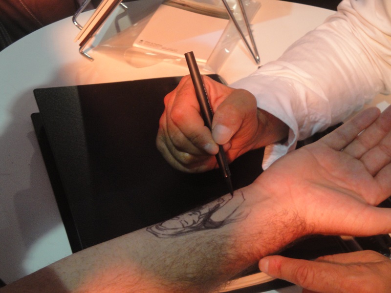 On commence timidement notre visite, notre but est de trouver les attachées de presse avec lesquelles nous collaborons. J’en profite pour faire ma seule dédicace du jour avec un artiste que j’apprécie énormément : Joël Alessandra, une belle rencontre.