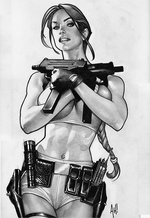 pin up,lara croft,aventurière sexy,adam hugues