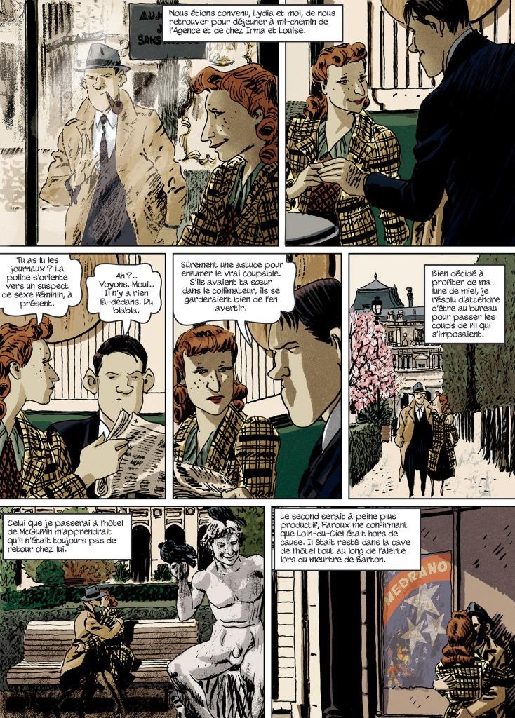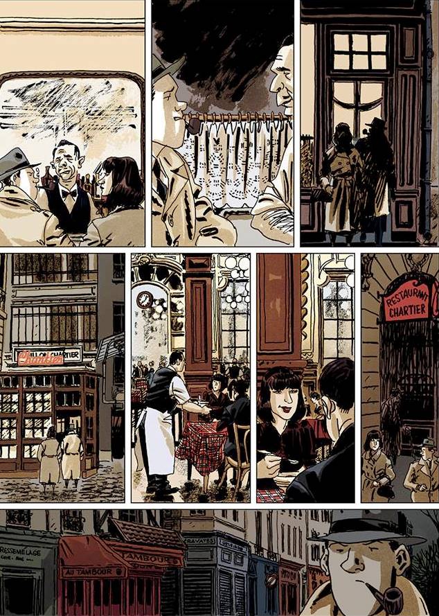 Avec un scénario adapté du deuxième roman de Léo Malet et paru en 1945, Moynot nous livre la suite des aventures de Nestor Burma dans l’ambiance pesante de l’occupation allemande. Au-delà d’une intrigue tarabiscotée, c’est la reconstitution du Paris bombardé et de ce climat glauque des années noires qui donnent une force incontestable à l’album. Le lecteur s’attarde sur les cases qui rendent cette atmosphère particulière des rues, des ponts, des stations de métro en 1942. Comme dans 120, rue de la gare, on cherche ici le petit détail historique dans les décors, les vêtements ou encore la saveur du vocabulaire de l’époque.