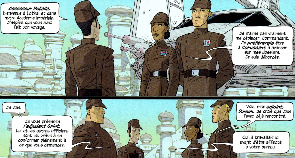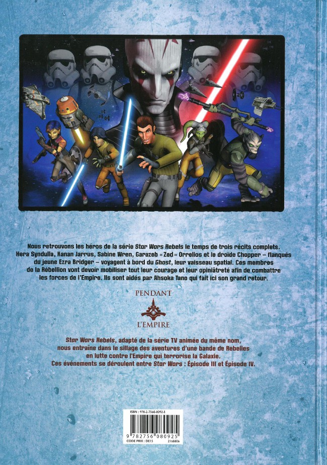 Voici donc ce quatrième album consacré par Delcourt à la bande dessinée inspirée de la série d’animation à succès STAR WARS Rebels. Trois récits complets nous sont présentés! ils ont tous le même scénariste mais seul le deuxième, dessiné par Ingo Römling, tire son épée du jeu. « L’évaluation » se passe dans une base de l’empire contrôlée – suite à de nombreuses attaques rebelles – par un officier supérieur et l’intrigue du récit, bien aidée par les illustrations, est plus que prenante. Une bonne lecture pour jeune public cependant.
