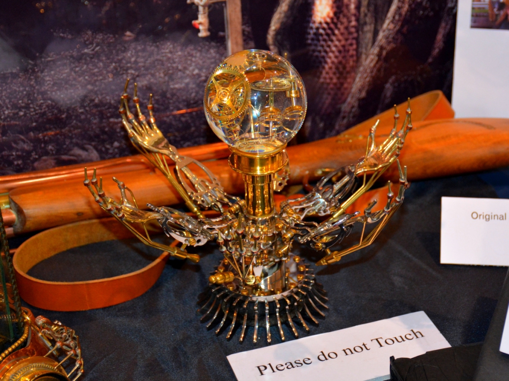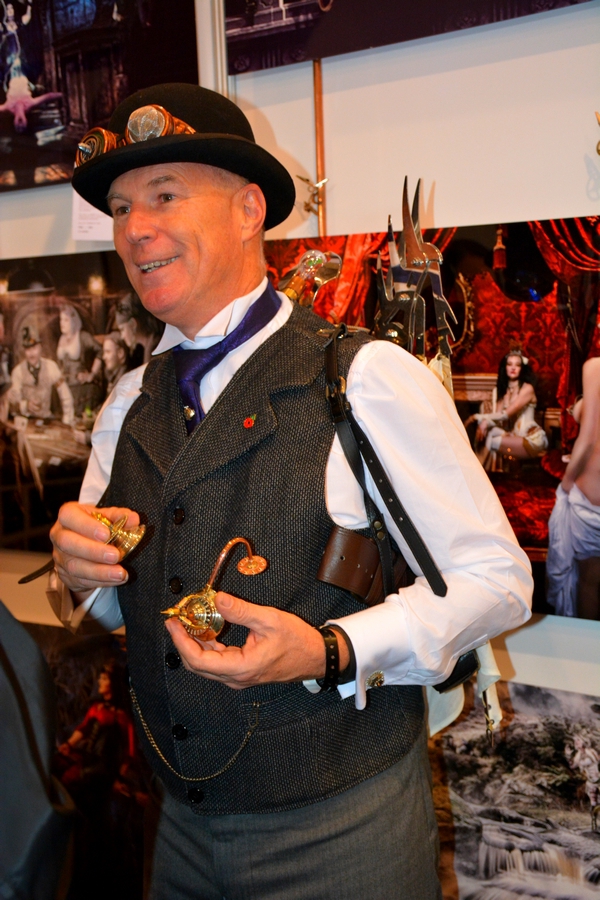 Ce qui nous amène lentement mais sûrement à la fin de cet article avec deux stands qui nous ont marqués. L’un assez glauque, avec des bocaux au formol contenant… honnêtement j’ai préféré ne pas regarder de trop près quand j’ai constaté qu’il s’agissait souvent d’embryons d’animaux morts mais qui auraient plu – le stand, pas les bocaux – à nos amis de chez Samba, fans de pin-up, car il y avait quelques tableaux de jolies donzelles des années 40-60. Et enfin un autre artiste venu avec tout son « Imaginarium » : Gary Nicholls, artiste de photographies conceptuelles œuvrant dans un style digne de Dickens et d’histoires « Steampunk » tout en image. Un régal pour l’imaginaire et les yeux, une terreur pour les portefeuilles.