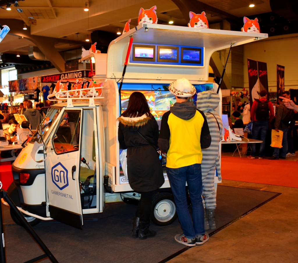 De même pour les jeux mis en valeur sur quelques stands, à savoir le nouveau Mariokart savamment présenté dans une petite camionnette aux allures vintages et pourtant équipée de la dernière technologie « game » ainsi qu’une parcelle de palais transformé en champ de bataille pour un laser game qui a ravi petits et grands, qu’on pouvait entendre rire et crier à l’autre bout de l’immense local, tandis que nous dégustions de merveilleux onigiri (gâteaux de riz), laissant de côté les traditionnelles roulottes de frites trop belges pour nous en ce jour.