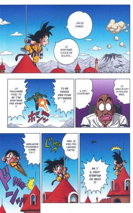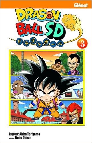 Parti à la recherche de la Su Shinchu de son grand-père, Goku se retrouve aux prises avec la redoutable armée du Red Ribon qui convoite également les Dragon Balls ! Après s être débarrassé du coriace commandant Blue, Goku récupère San Shinchu, la boule à trois étoiles… Évidemment, il ne va pas s arrêter là ! Dans ce volume, préparez-vous à découvrir la version SD d un vieil ennemi : Tao Pai Pai !!